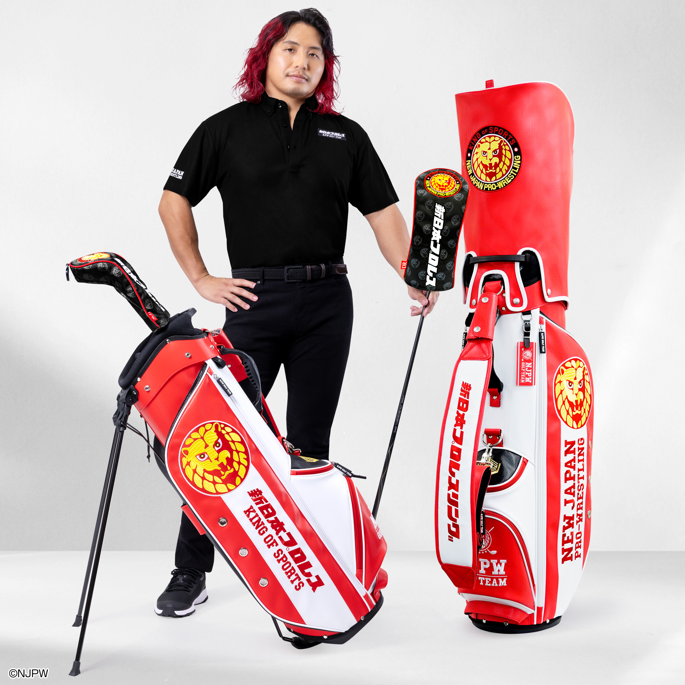 【初回150本限定】新日本プロレス キャディバッグ<スタンドタイプ> 限定特典→ ストレートタイプヘッドカバー(ドライバー用)付き